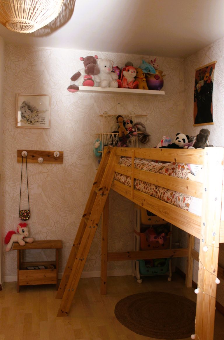 présent dans la chambre, se marie subtilement avec les couleurs choisies, et apporte de la
