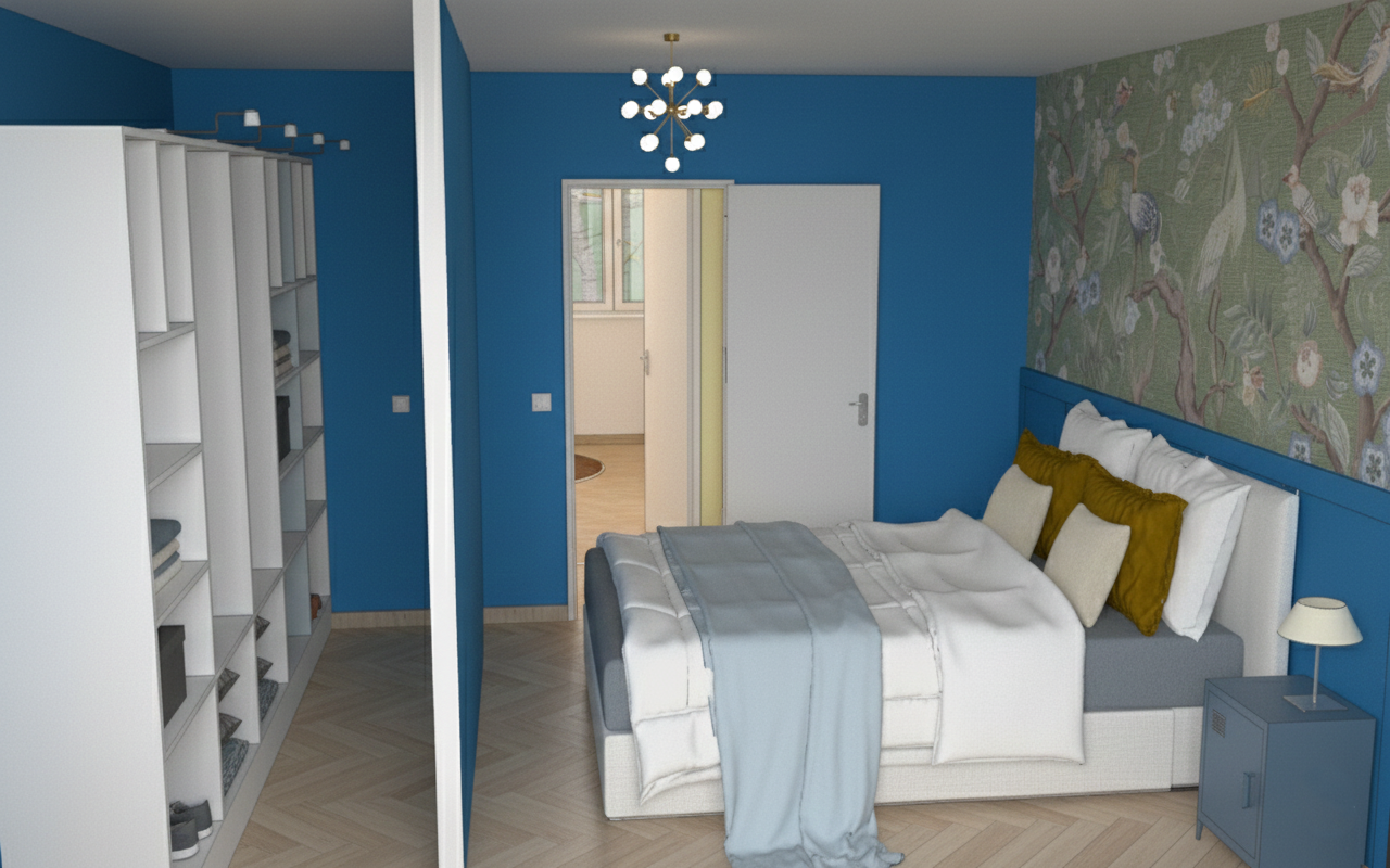 Pour ce projet, nous avons réalisé l’aménagement d’une chambre parentale, avec dressing.